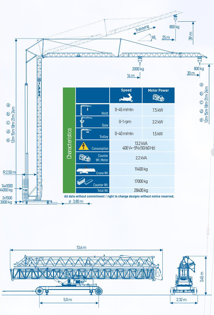 - Biggest Crane in its category with Jib length of 30m and 39m maximum height in luffed position.